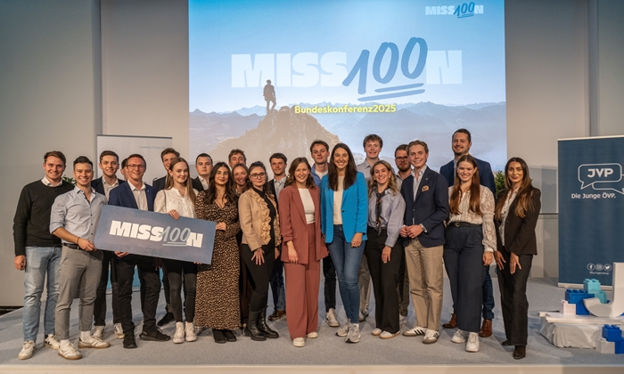 Vergangenes Wochenende hat in Salzburg die Bundeskonferenz der Jungen Volkspartei stattgefunden. Delegierte aus ganz Österreich kamen zusammen, um Ideen und Schwerpunkte für den größten Zukunftsprozess in der Geschichte der JVP zu entwickeln. Ziel der „Mission 100“ ist es, gemeinsam 100 Ziele bis zum 100. Geburtstag der JVP zu definieren.